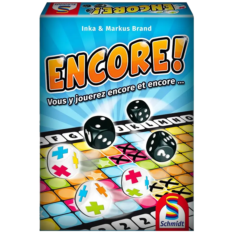 Dans Encore Kids, une aventure palpitante se déroule au zoo ! Aidez les animaux en cochant leurs enclos en fonction des couleurs indiquées par les dés. Le but ? Remplir un maximum de colonnes pour accumuler des points. Tout le monde joue en simultané, ce qui garantit des parties dynamiques où personne n’attend. Au fur et à mesure que la tension monte, tout le monde s’écrie « ENCORE ! » lorsque la partie se termine.