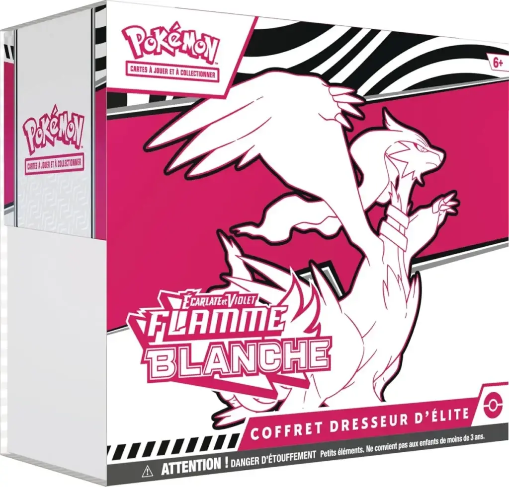 Le Coffret Dresseur d’Élite Écarlate et Violet – Flamme Blanche est une édition complète du JCC Pokémon, idéale pour les joueurs et collectionneurs. Avec 9 boosters, une carte promo exclusive de Reshiram, de nombreux accessoires de jeu et un coffret de rangement, c’est un incontournable pour enrichir votre collection ou construire un deck puissant.