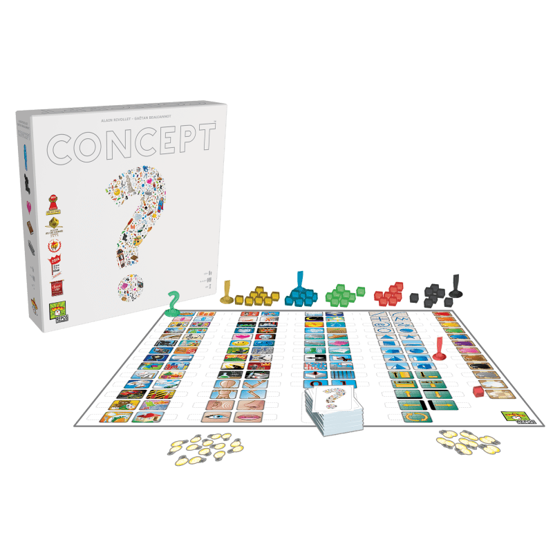 Dans Concept, les joueurs utilisent des icônes pour faire deviner des mots. En plaçant des pions sur ces icônes, chaque équipe guide son partenaire vers la bonne réponse. Le premier à deviner remporte des points et, après 12 manches, l’équipe avec le plus de points gagne.