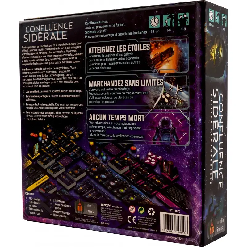 Dans Confluence Sidérale, négociez, innovez et cherchez à imposer votre civilisation tout en équilibrant vos avantages avec ceux des autres joueurs.