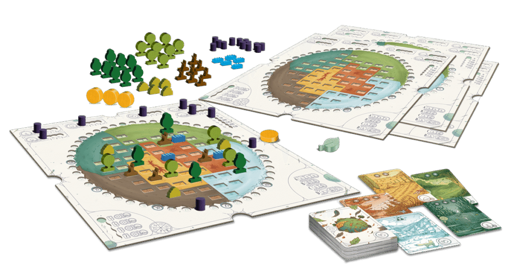 Dans Evergreen, un jeu de stratégie abstrait pour 1 à 4 joueurs, plongez dans la création d’un écosystème florissant. Vous devrez planter des graines, faire pousser des arbres et développer des éléments naturels sur votre planète pour la rendre aussi verte et fertile que possible. Chaque décision vous rapproche ou vous éloigne de l’objectif : créer l’environnement le plus prospère.