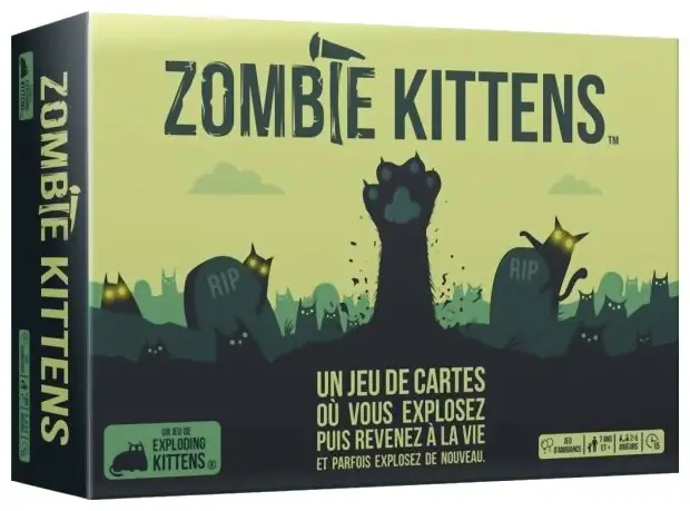Zombie Kittens est une nouvelle version hilarante et stratégique d’Exploding Kittens où les chatons zombies ressuscitent les chatons explosés pour continuer la partie. Profitez de vicieuses nouvelles stratégies dans ce jeu standalone plein d’humour et de suspense.