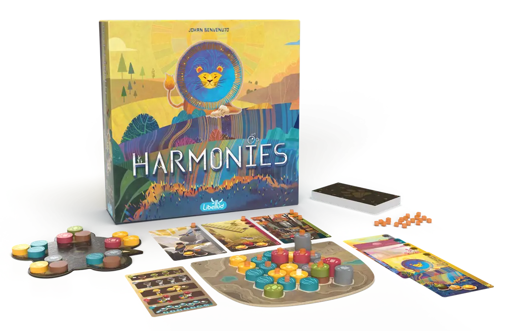 Dans Harmonies, construisez des paysages en plaçant des jetons de couleur et créez des habitats pour vos animaux. Le jeu repose sur la stratégie pour obtenir le plus grand nombre de points. Un jeu de réflexion et de créativité pour tous les âges.
