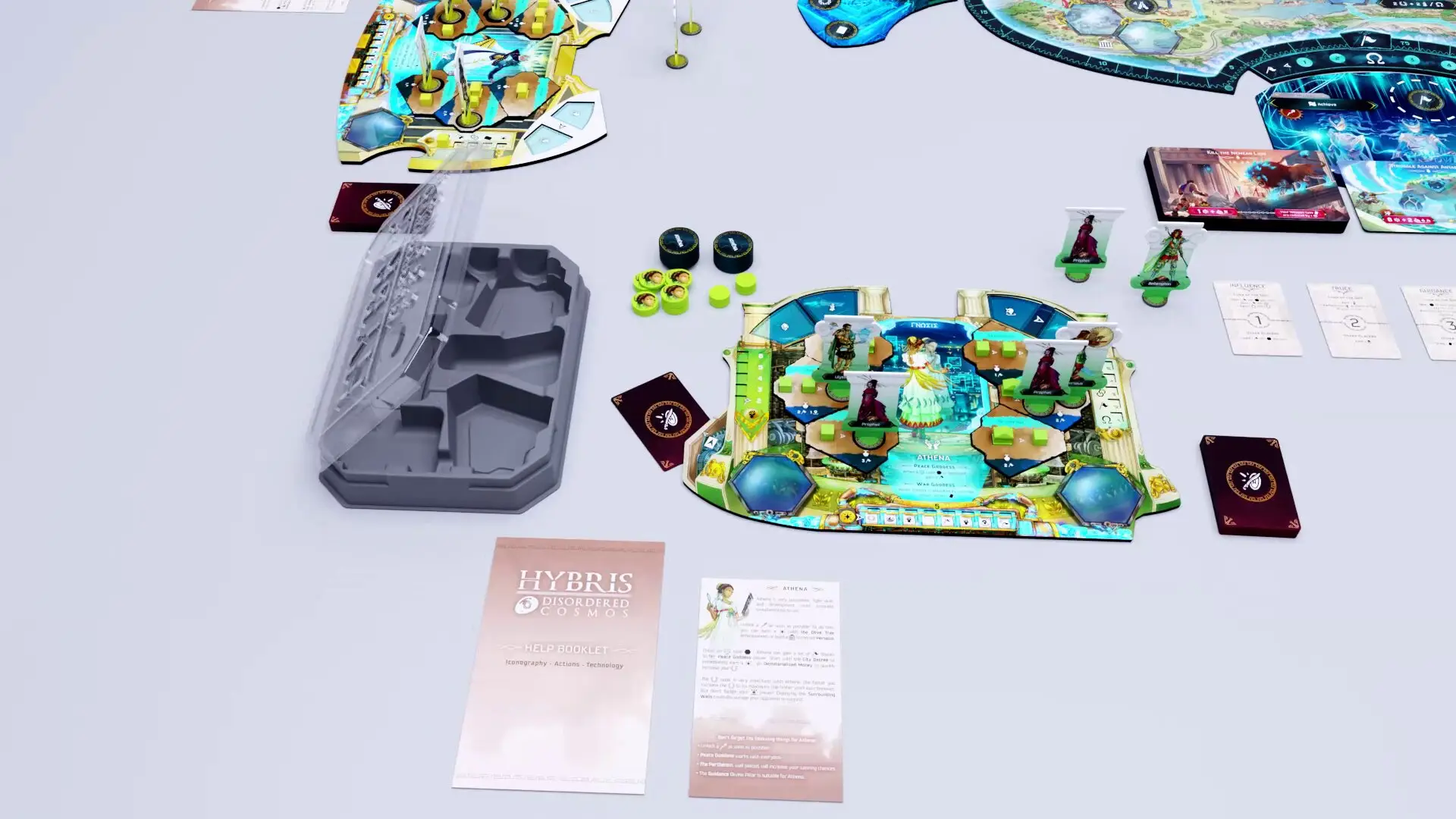 Dans Hybris, un jeu de placement d’ouvriers stratégique pour 1 à 4 joueurs, plongez dans l’univers mythologique de l’ascension des Olympiens. Après la chute des Dieux primitifs, Zeus et ses frères doivent s’imposer en tant que véritables divinités, en manipulant l’énergie primordiale (l’Eegis) pour développer des technologies et accomplir des quêtes.