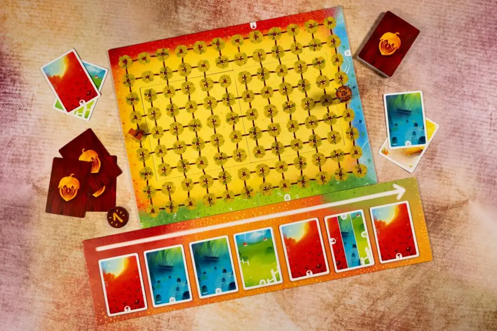 Dans Le Chemin de la maison, piochez une carte à chaque tour, gardez-la secrète, puis placez-la face cachée sur le plateau. Chaque carte indique une direction pour Squirly. Lorsque 5 cartes sont posées, révélez-les et déplacez Squirly en conséquence. Un jeu simple mais stratégique où chaque décision compte !
