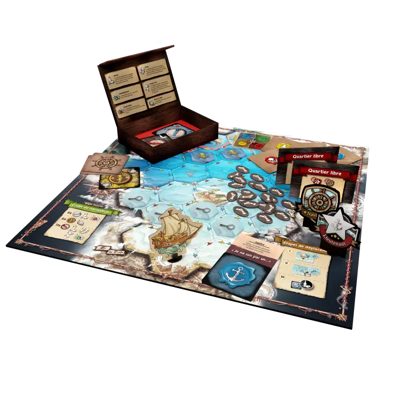 Avec L’Ombre du Kraken, naviguez entre mensonges, manipulations et coups d’éclat pour imposer votre vision du destin du navire. Mais attention… l’océan est rempli de mystères !
