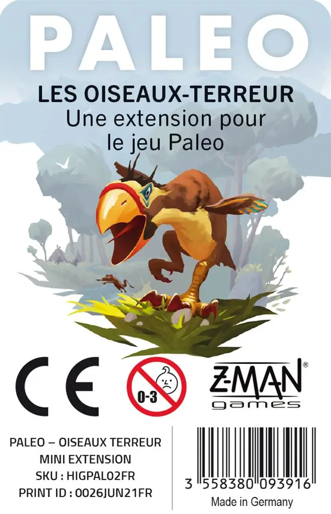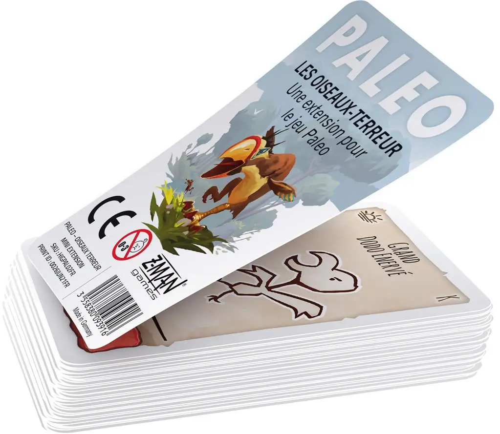 Plongez dans l’univers fascinant de Paléo avec cette extension captivante : Les Oiseaux-Terreur. Dans cette nouvelle aventure, explorez une zone inédite où de mystérieux œufs géants attirent votre attention. Votre objectif ? Récupérer ces précieux œufs avant qu’ils n’éclosent et que leurs redoutables habitants ne sèment le chaos.