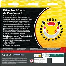 • Une carte promo brillante exclusive de Pikachu avec le stamp Journée Pokémon 2026 – 30 ans