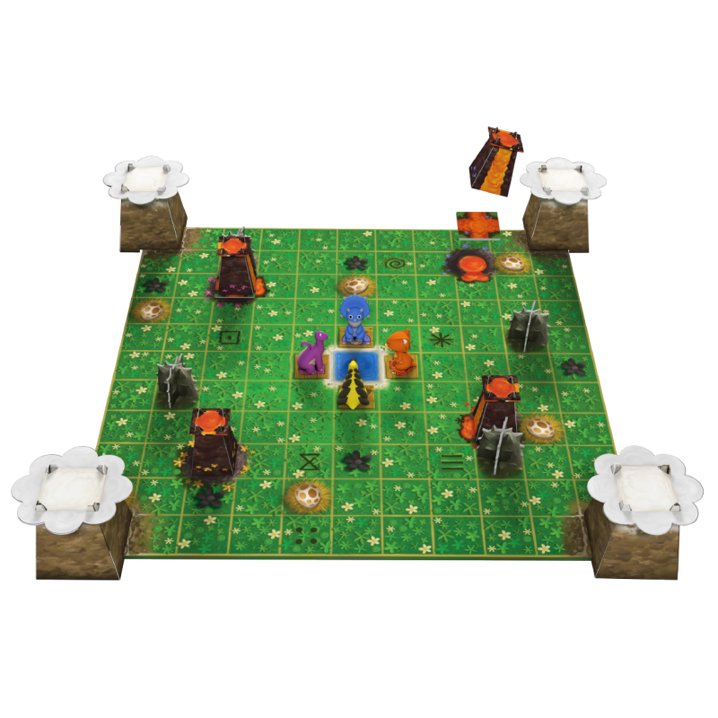 Dans SOS Dino, les joueurs unissent leurs forces pour sauver les dinosaures de l’éruption volcanique. En récupérant des œufs et en guidant les dinos vers les montagnes, la coopération est essentielle pour éviter que la lave n’envahisse le plateau. Un jeu coopératif parfait pour les familles.