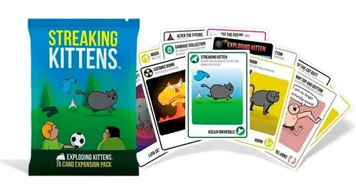 Streaking Kittens enrichit Exploding Kittens avec de nouvelles cartes inédites qui ajoutent des rebondissements imprévisibles et des stratégies encore plus folles !