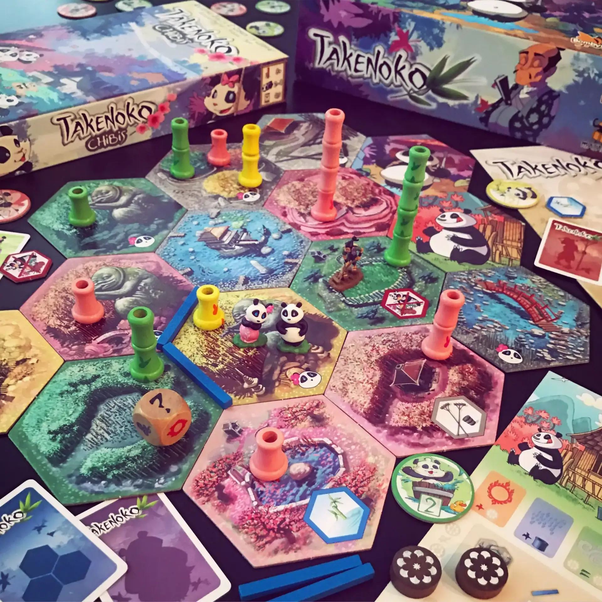 Takenoko Chibis redéfinit votre jardin en offrant de nouveaux défis pour élever une famille de pandas. Déployez de nouvelles tuiles et objectifs pour créer un havre stratégique. Conjuguez tactique et douceur pour satisfaire l’Empereur et devenir le meilleur jardinier.
