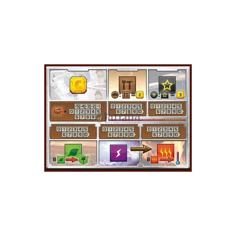 5 plateaux joueurs pour Terraforming Mars en relief pour mieux garder les éléments de jeu en place.
