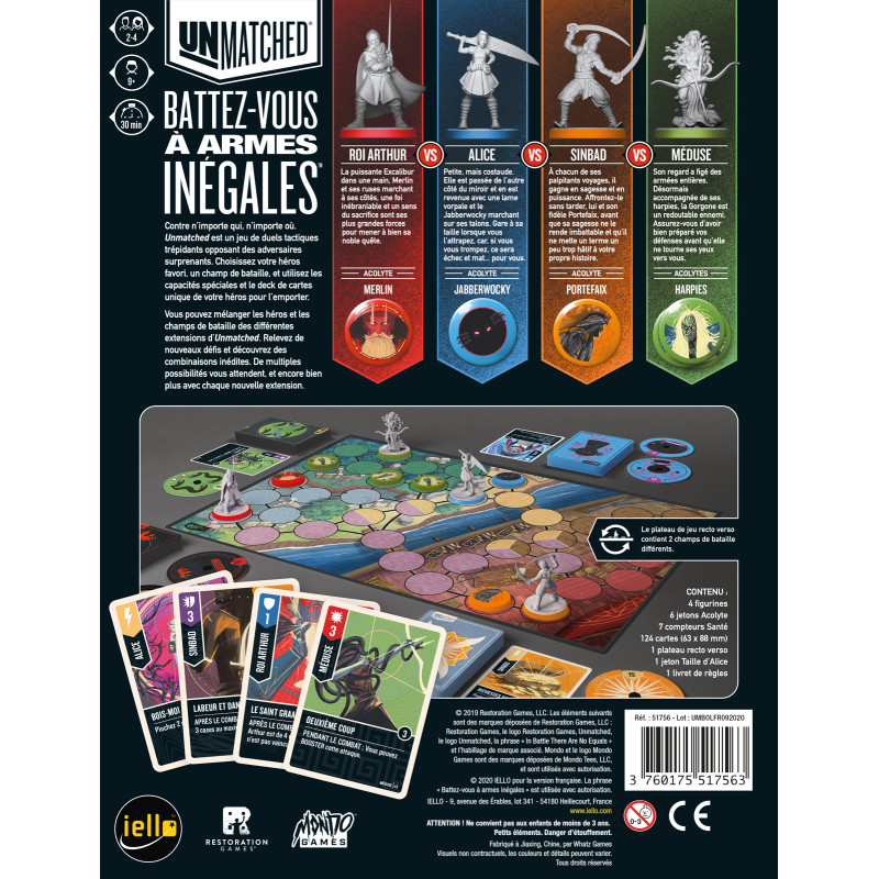 Entrez dans l’univers captivant d’Unmatched, un jeu de combat tactique où des héros emblématiques s’affrontent dans des duels intenses et asymétriques. Chaque personnage possède ses propres capacités et un deck unique, vous offrant une expérience de jeu renouvelée à chaque partie.