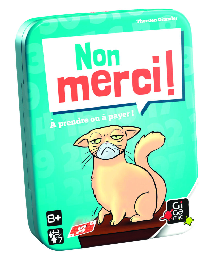 Non Merci est un jeu subtil qui demande réflexion et stratégie. À chaque tour, vous devrez choisir entre accepter une carte ou dire « Non merci ! » en posant un de vos jetons sur la carte refusée. Le joueur suivant prendra alors une décision, et pourrait même récupérer votre jeton.