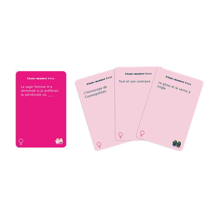 Blanc Manger Coco – La Guerre des sexes est un jeu d’ambiance humoristique où les joueurs complètent des phrases à trou avec des cartes pour créer des combinaisons drôles et détonantes. Parfait pour l’apéro, ce jeu explore les stéréotypes des univers masculins et féminins pour des moments de rire garantis.